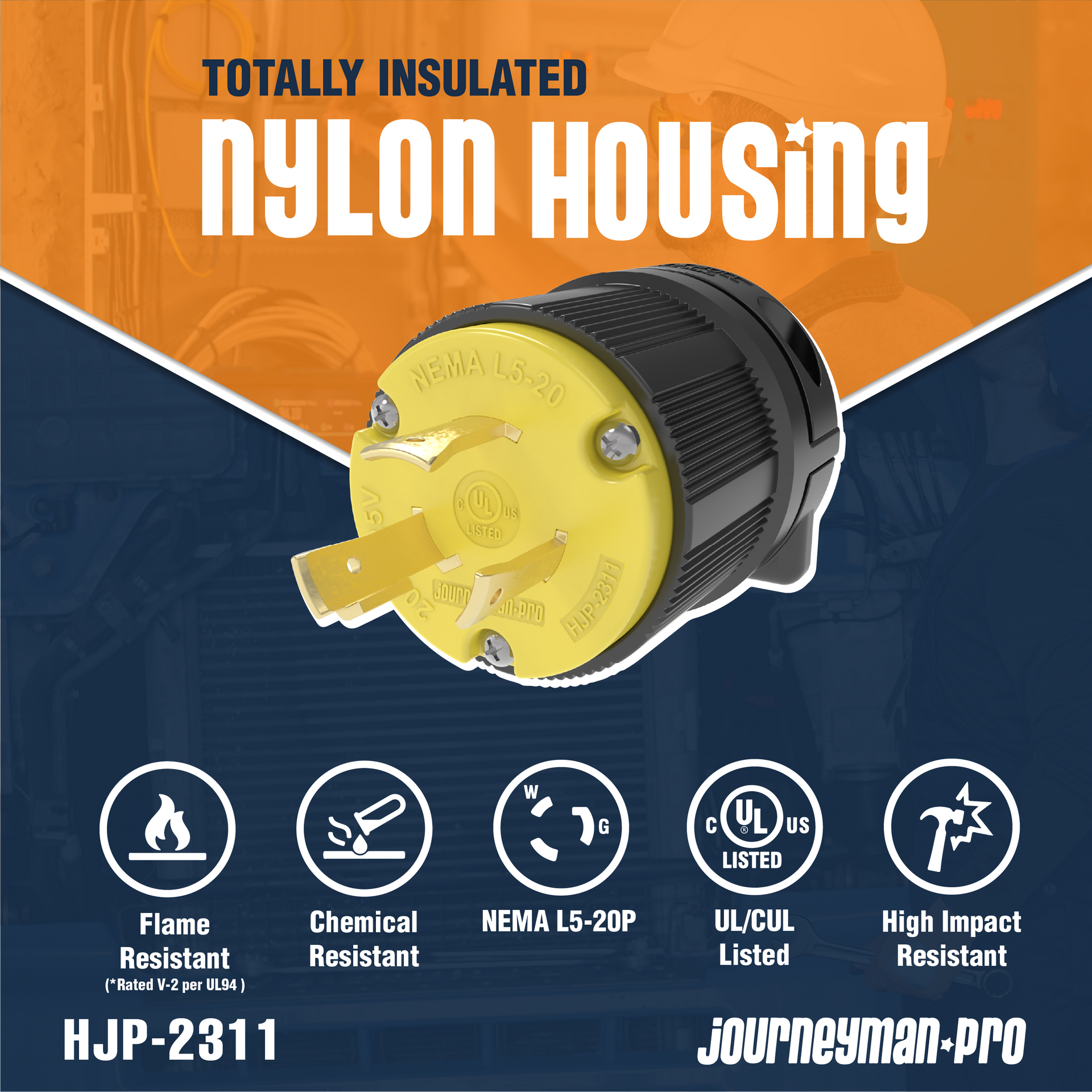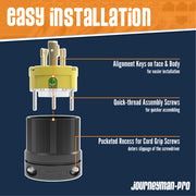 - INDUSTRIAL GRADE: NEMA L5-20P, 3 Pole, 4 Wire, Locking Plug Connector Black/Yellow